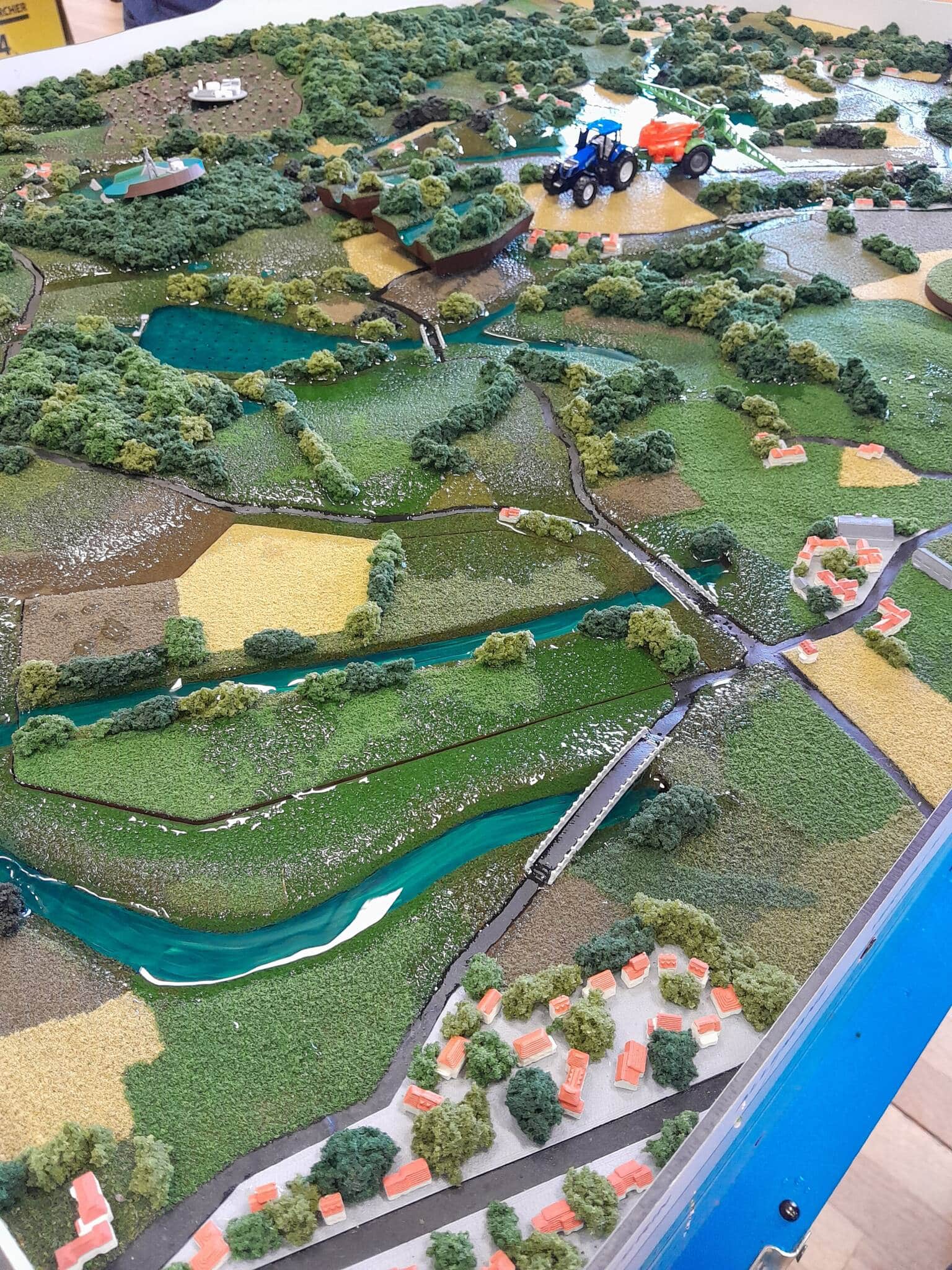 Deux ateliers ont rythmé la matinée. Le premier, animé par des agents du Parc, a permis aux animateurs de se familiariser avec la maquette de bassin versant. Cet outil pédagogique et interactif, créé spécialement pour le Périgord-Limousin et financé par l’Agence de l’Eau Adour-Garonne, représente un coin du territoire et permet de simuler la circulation de l’eau dans nos paysages. Son utilisation nécessite un temps d’appropriation : comment l’installer ? Quels sont les modules interchangeables ? Quels messages faire passer ?… Les échanges en petit groupe ont permis à chacun de constater que la maquette permet d’aborder de manière très variée l’impact des activités humaines sur la qualité et la quantité d’eau.